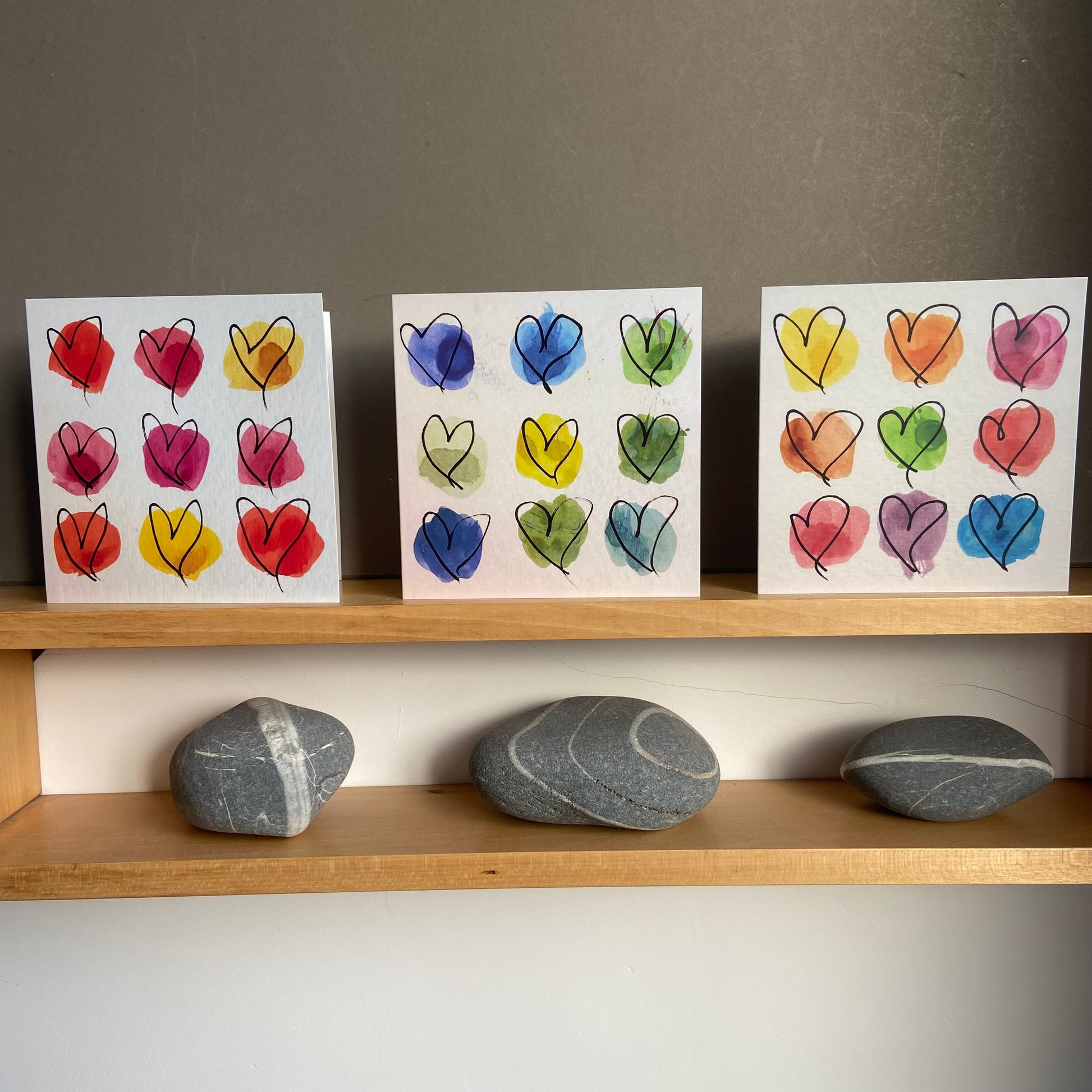 Set of three limited edition art cards. Taken from my original watercolour and ink painted hearts.