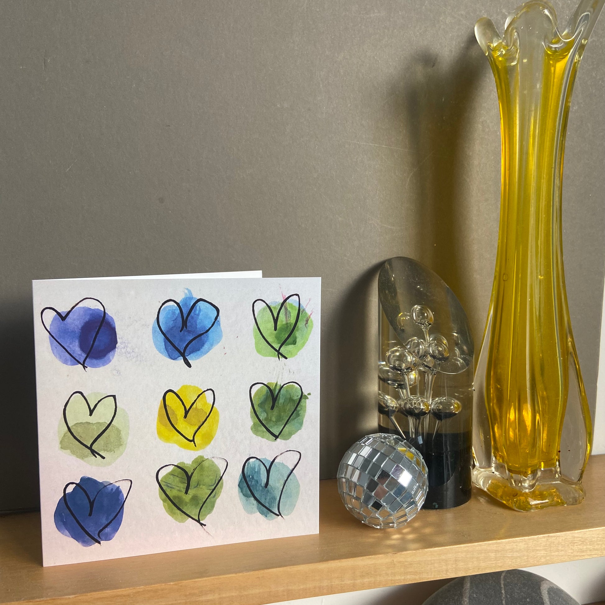 Blues and Greens Hearts Art Card