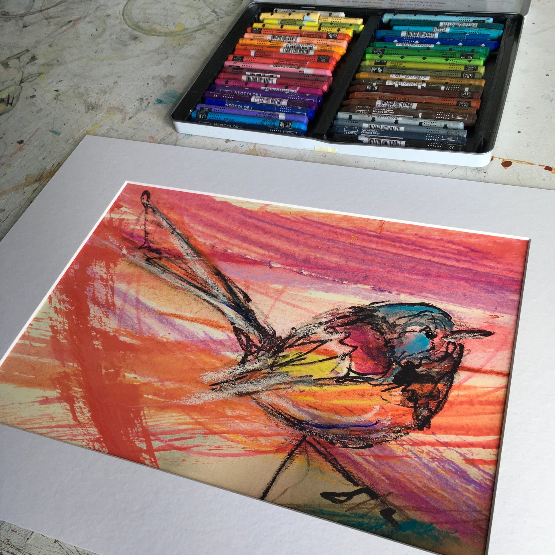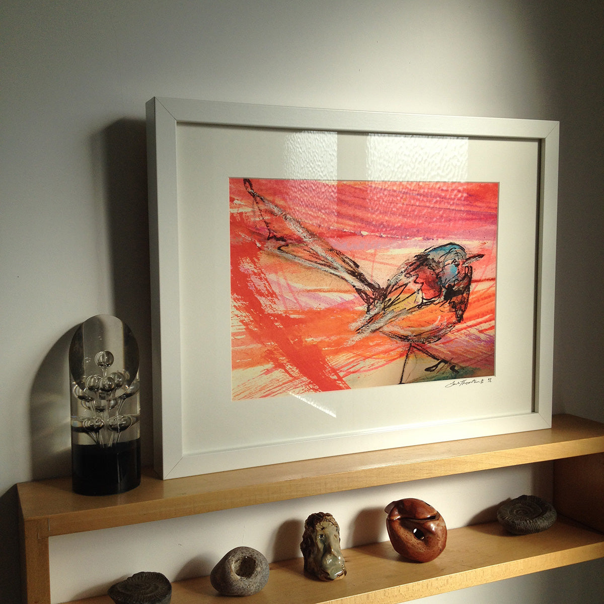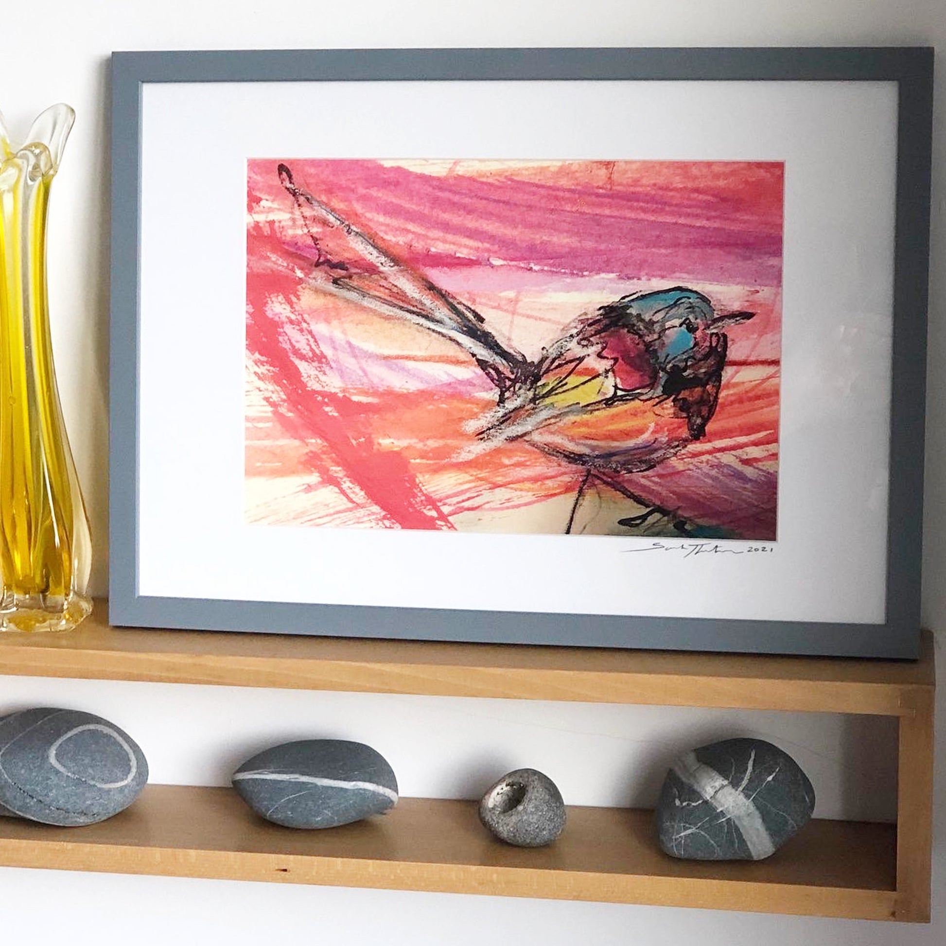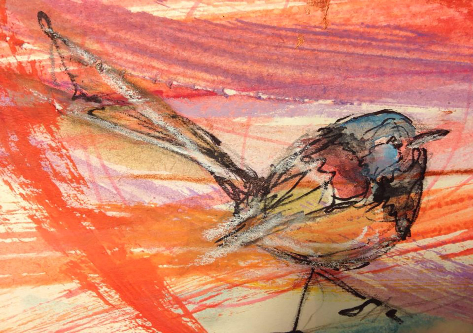 This little character is an Australian relative of our British Wren and sports a bit of funky colour. The original painting was only little and possibly one of the first ever pieces of art I felt happy with, the uneasy hapiness of the artistic temperament.