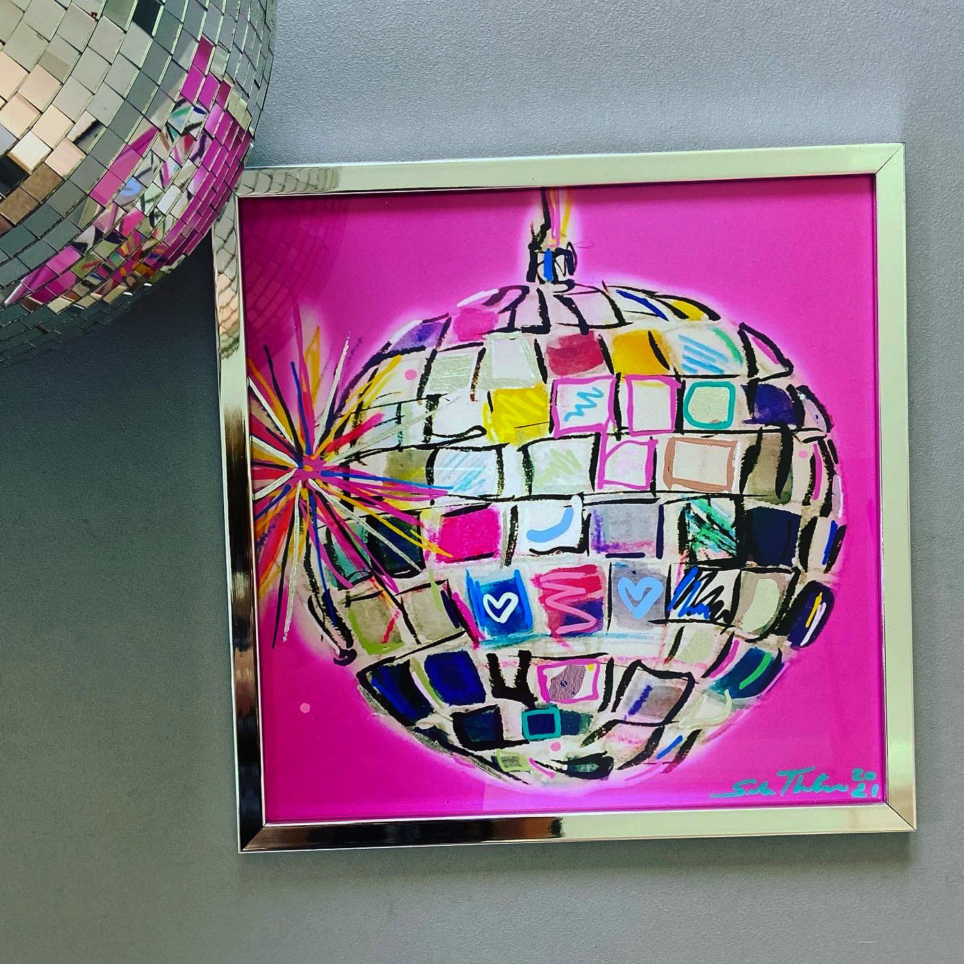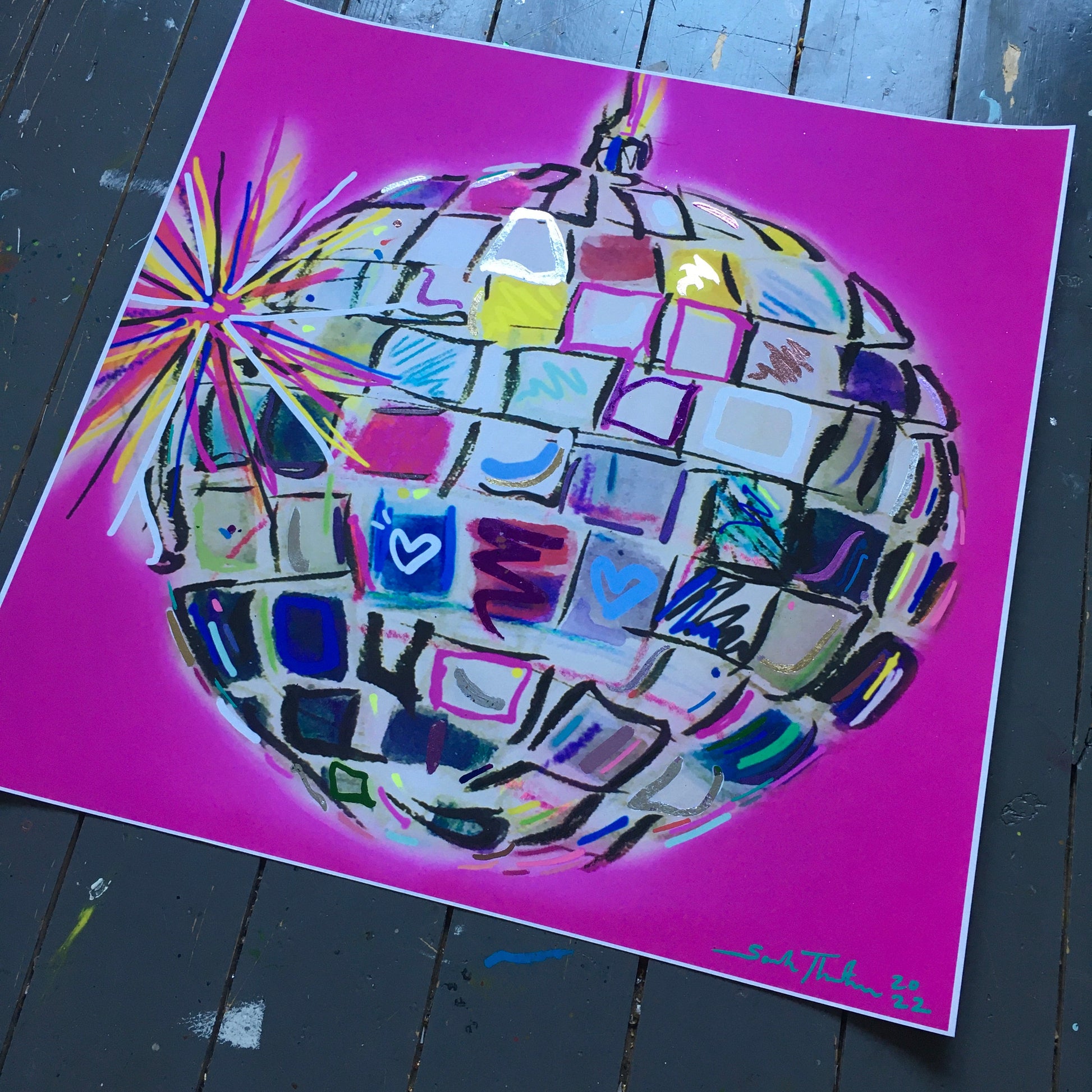 Looking for something truly unique? Choose the hand finished option, I'll carefully add the mirrorball magic using colour, gold, silver and rose gold leaf elements. Happy to add a little bespoke detail too, just let me know what you would like.