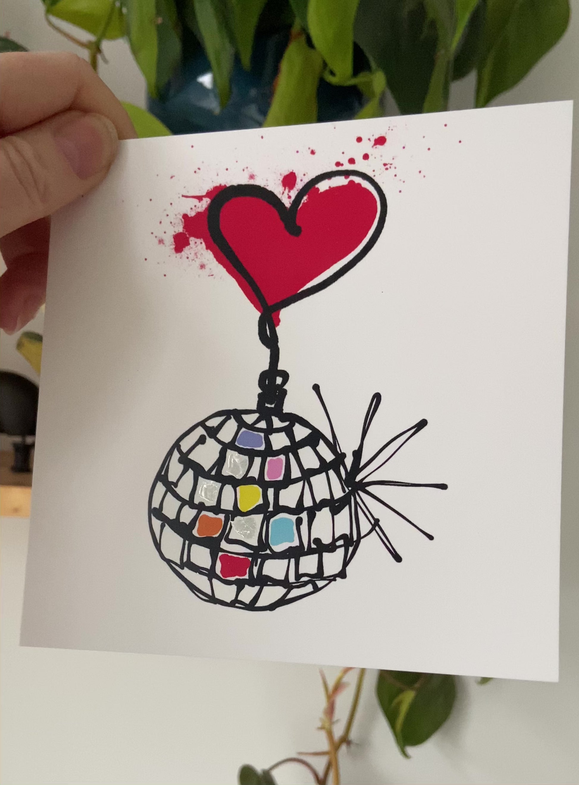 A little funsize 'I Heart Disco' card with silver leaf detail.