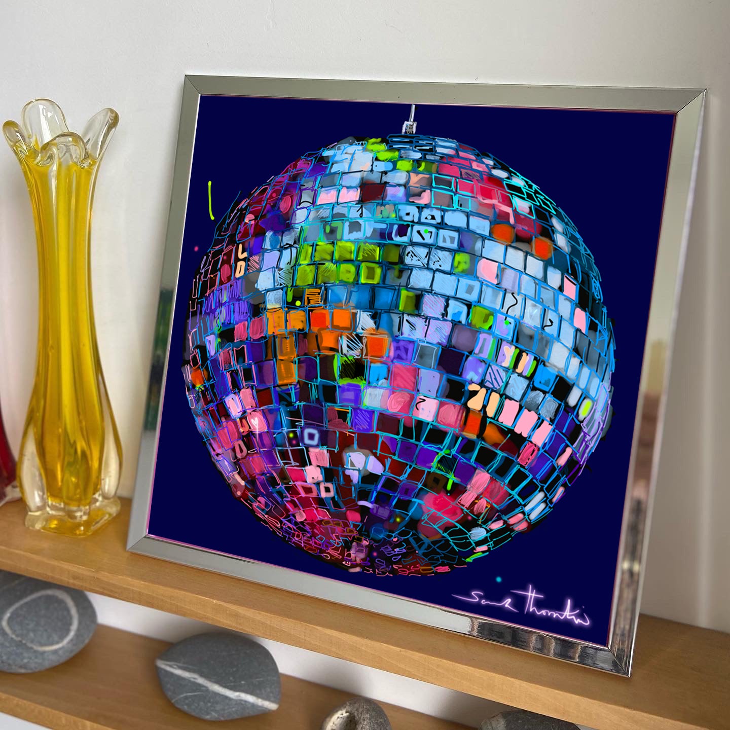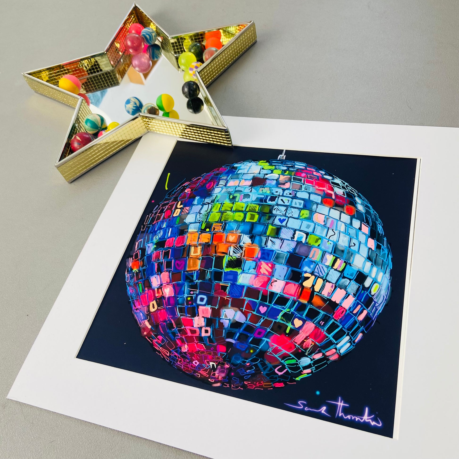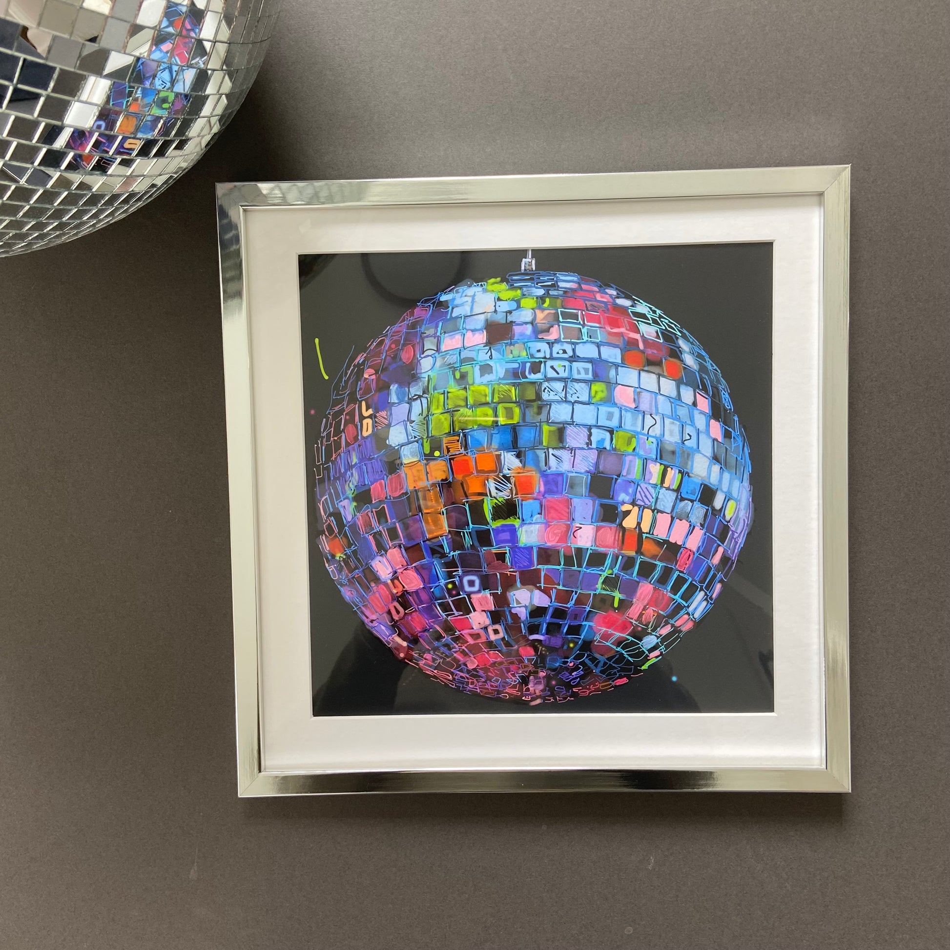 Looking for something truly unique? Choose the hand finished option, I'll carefully add the mirrorball magic using colour, gold, silver and rose gold leaf elements. Happy to add a little bespoke detail too, just let me know what you would like.
