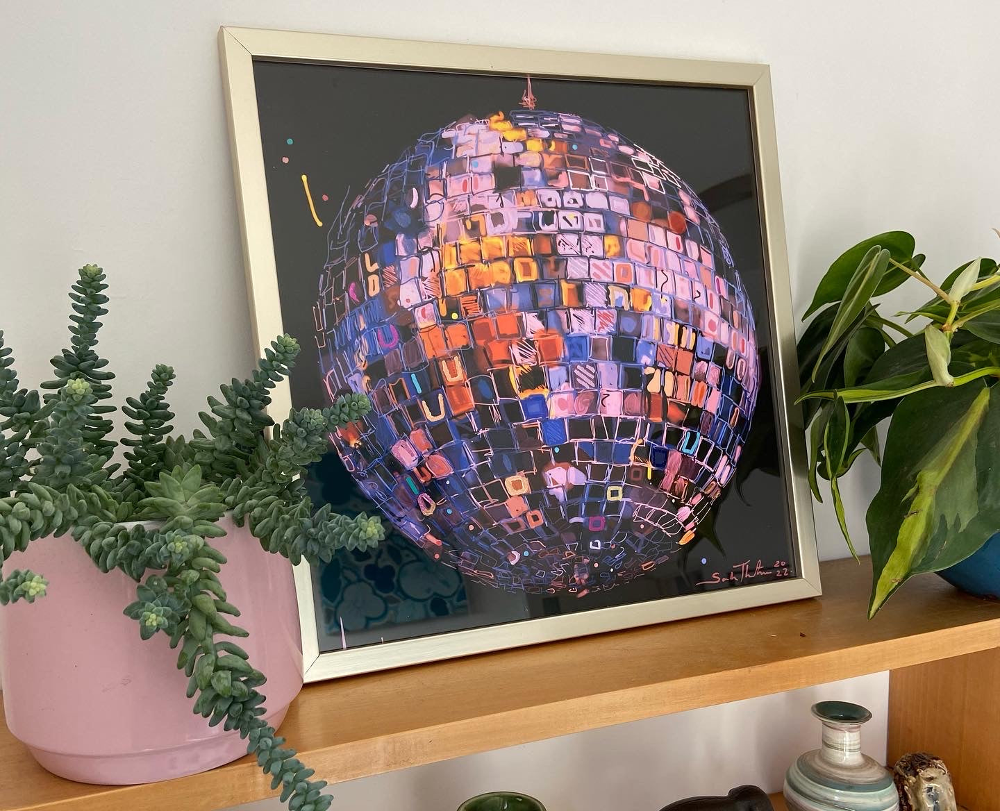 I'll carefully add the mirrorball magic using colour, gold, silver and rose gold leaf elements. Happy to add a little bespoke detail too, just let me know what you would like.