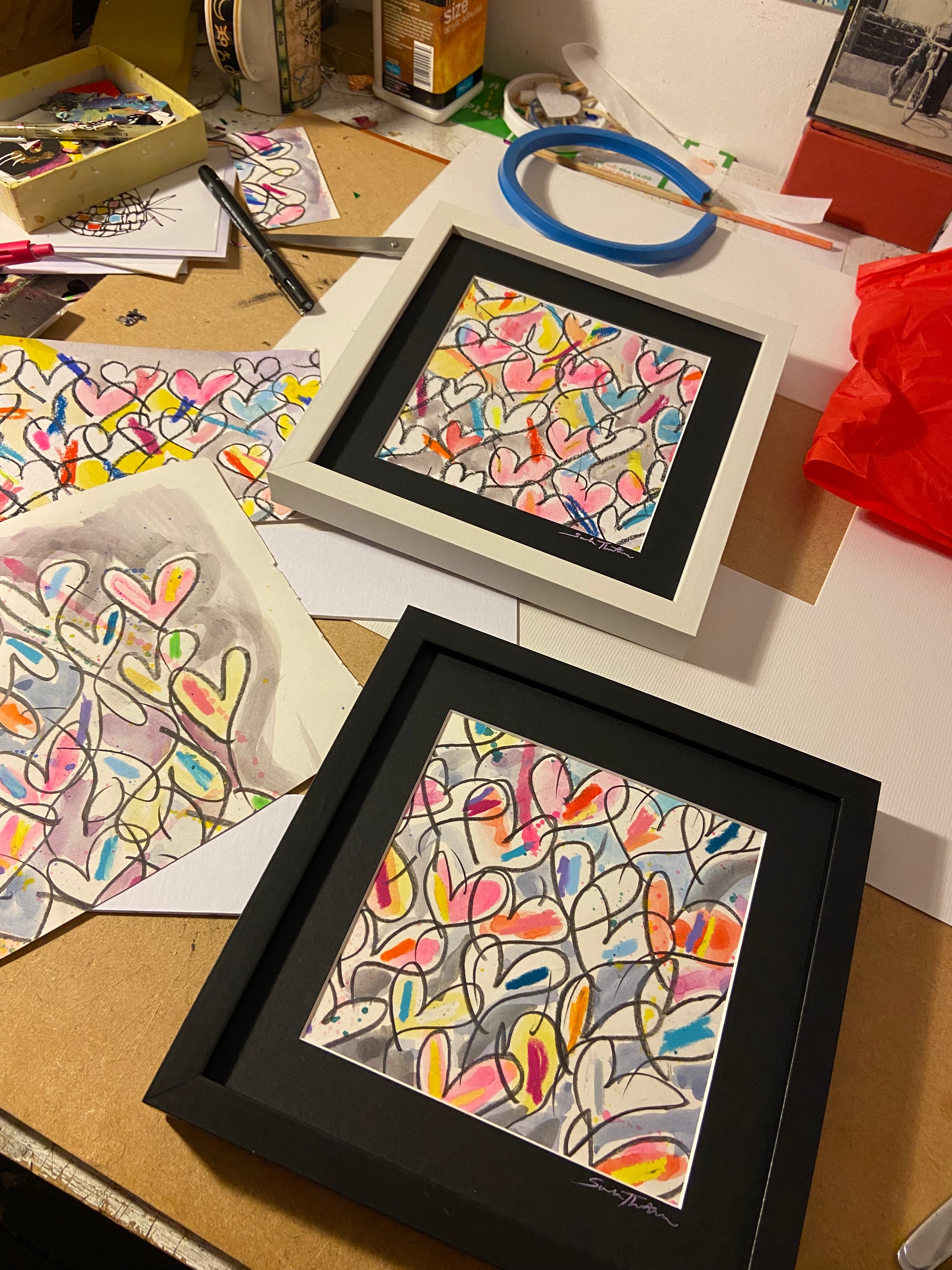 SOLD Fast and energetic and full of life, these little hearts are zesty with colour and movement.