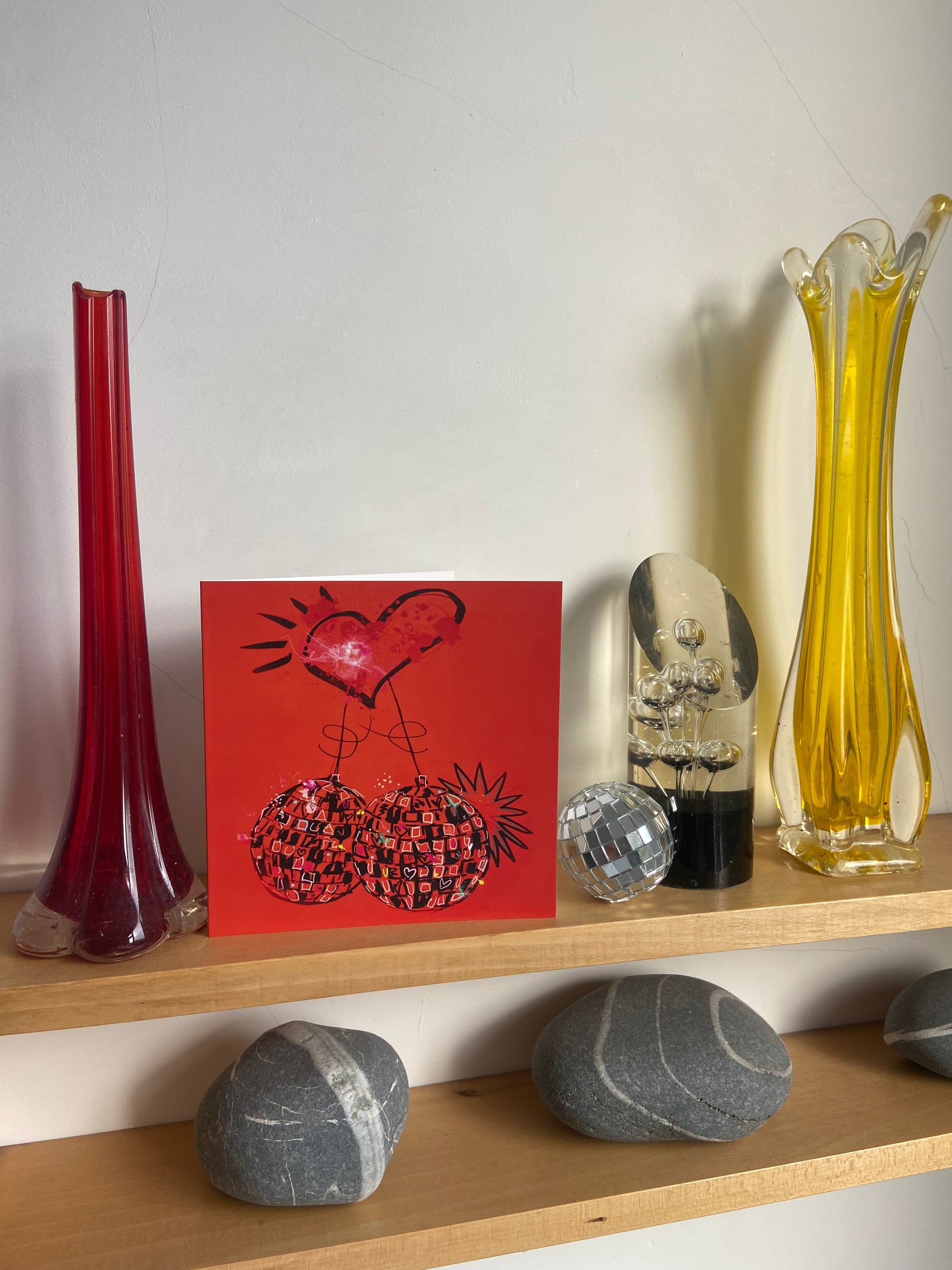 A little bit cheeky, a little bit fun. A lovely, gleaming pair of disco balls. Getting all red and ready for happy times , yes I love a love heart and yes I love a discoball.